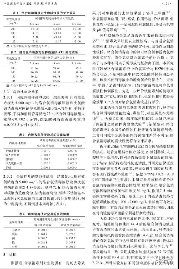 絡(luò)合氯消毒液對內(nèi)鏡生物膜去除效果及腐蝕性研究